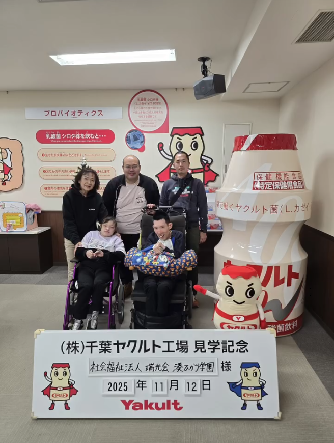 日帰り旅行第七弾。 千葉ヤクルト工場に行きました。 見学は午後からなので午前中はイトーヨーカドーで買い物👜&食事🍴Time。 それぞれ欲しいものを吟味して買い物を楽しみました。 そして・・・・プリクラにも挑戦。 その後は食事🍴 美味しそうに食べていました🍔 食事後はいよいよ千葉ヤクルト工場へ🚙 見学前に写真を撮りました📷 見学中も真剣は表情で動画を観たり、工場見学をしていまた。