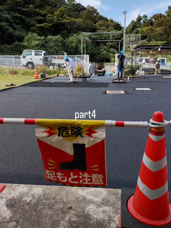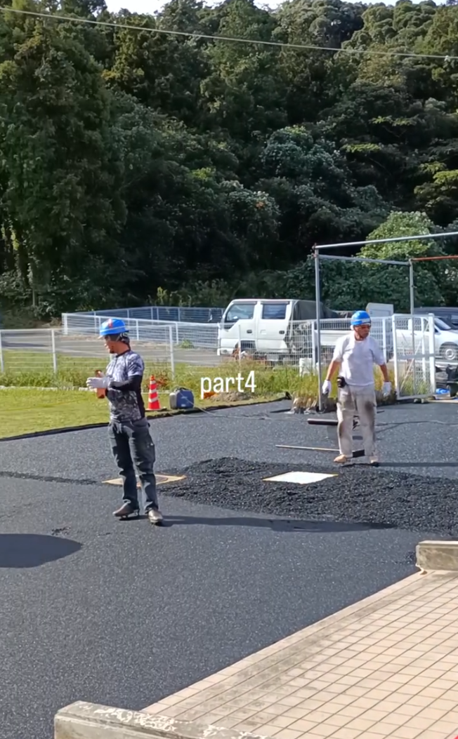 ゴムチップが敷かれ、2日置くと完成です🛣