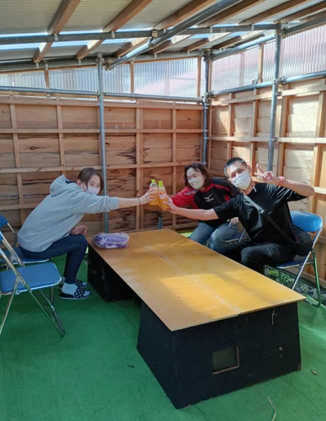 ひと仕事終えて休憩所で一服。