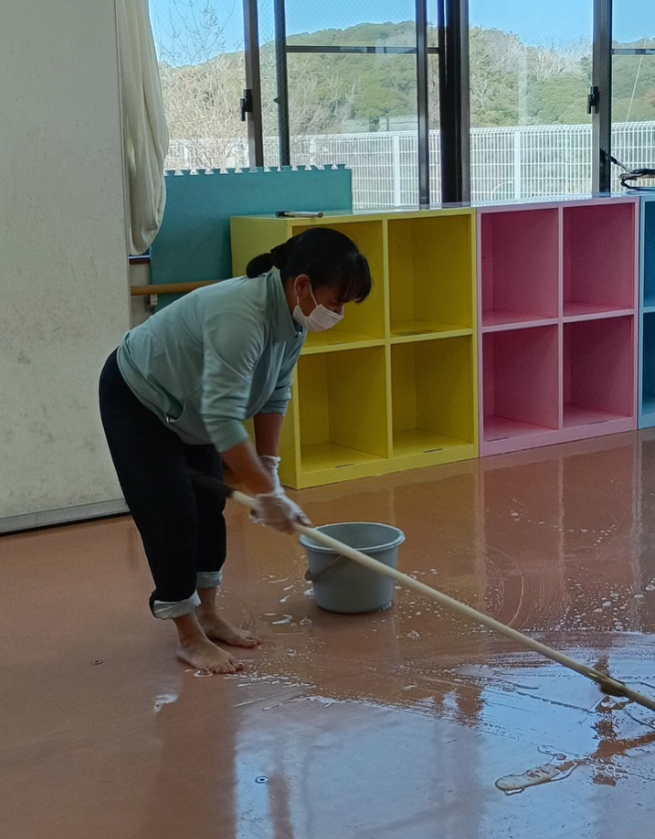 今日は施設のワックスがけと館内清掃✨