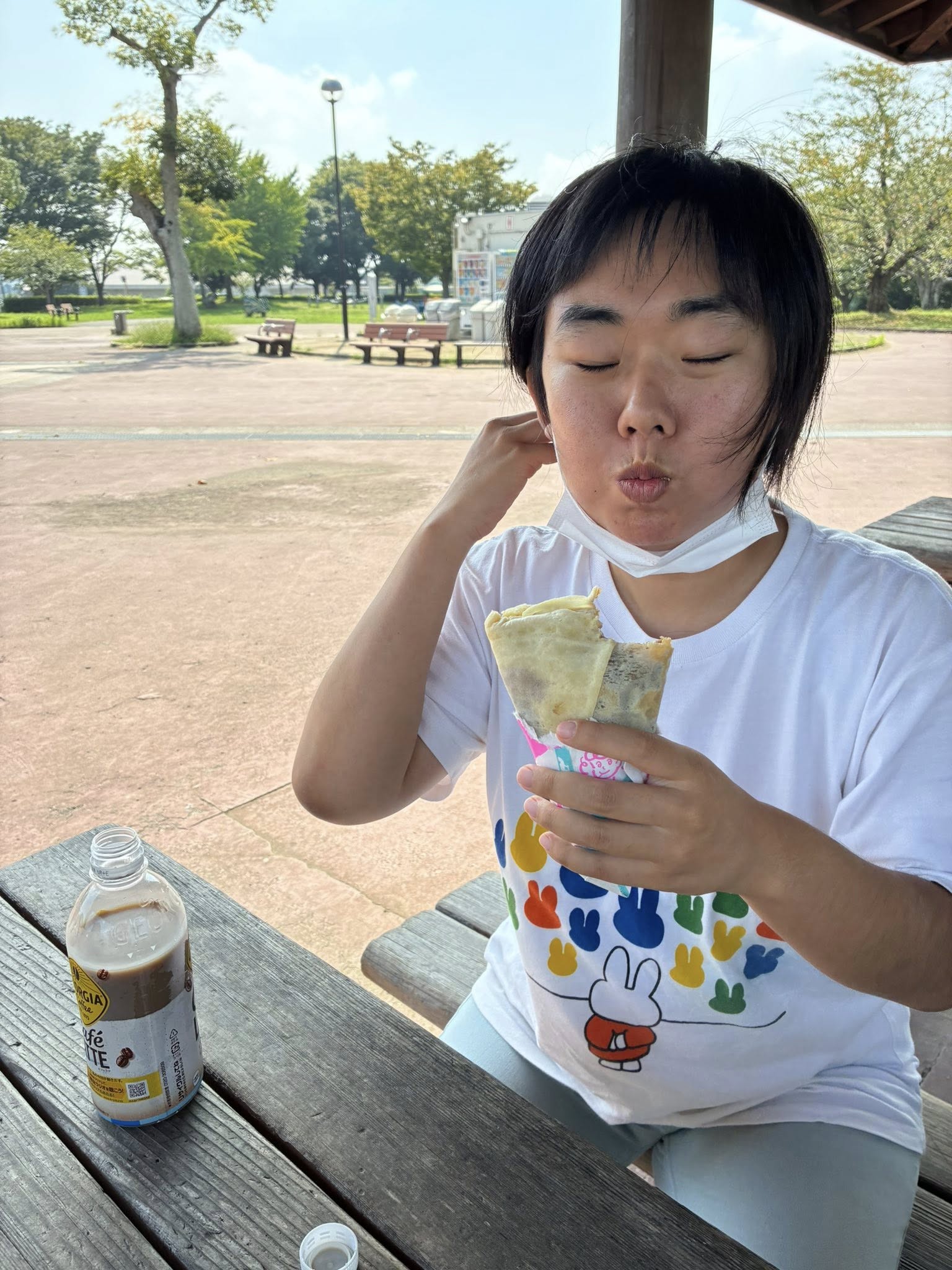 oneデー♪で、ラーメンを食べに行きました🍜 森野さん、ラーメン、チャーハン、餃子を食べ、 「満足げな笑顔😀 おやつはクレープを買って、袖ヶ浦公園へ🎵 最後に池の鯉にもおすそわけ☺️ 笑顔がいっぱいの一日でした。