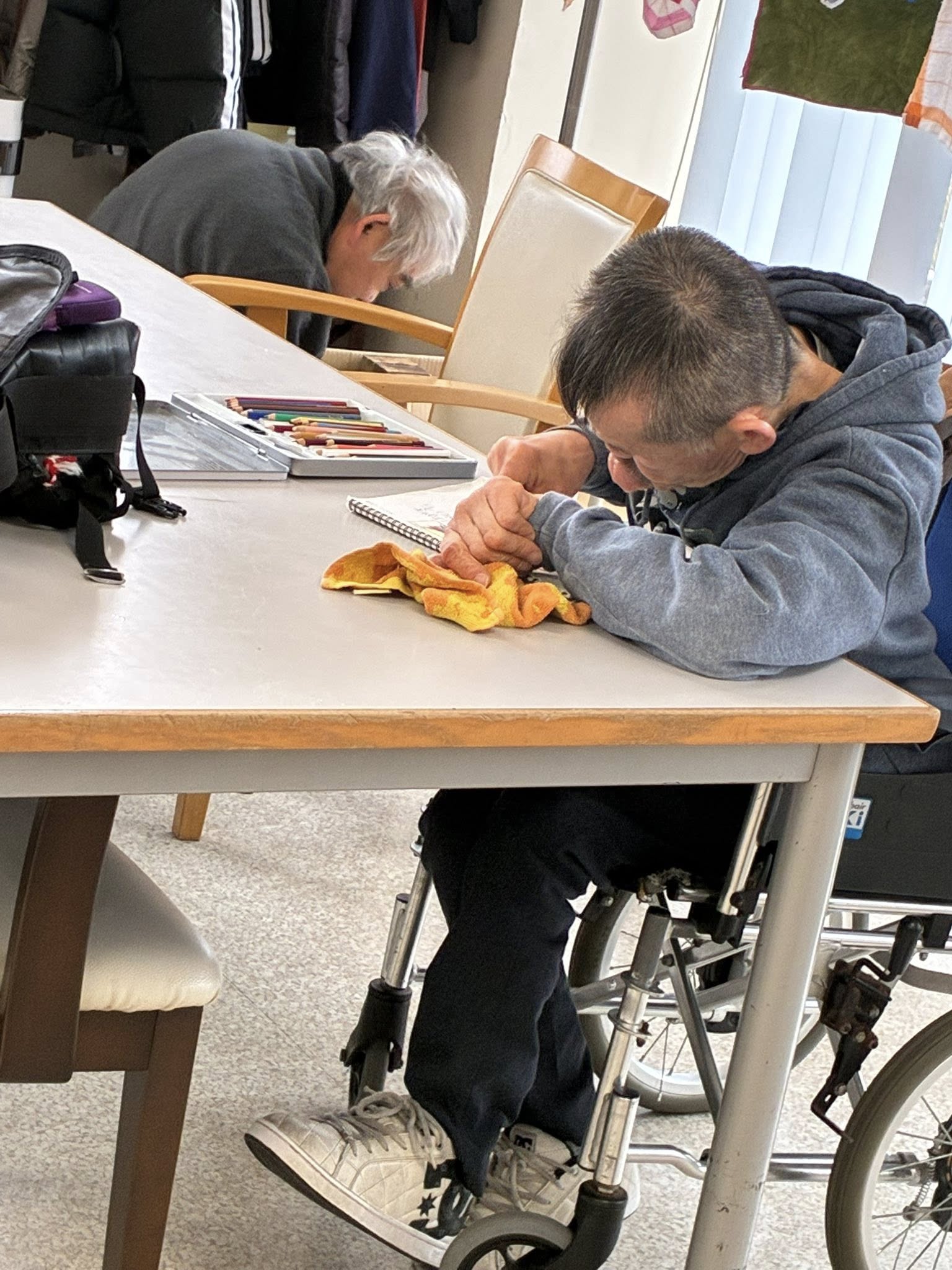 寒く急に今日はなりましたね… 皆さん体調お気をつけてください😊 さて、今日は利用者さんの 何気ない表情などお伝えさせて頂きます まず、今日は火曜日弁当こと、外注弁当で 利用者さんわくわくして、選んでいました🤭 ご飯の後はおやつをします。 皆さん各々過ごしておりウトウトしたり ニコニコ笑って絵を描いたりなど 楽しそうな様子が多くみられていました。 今日も丸一日平和で 利用者さんが幸せそうな様子で 安心しました🥴 さて、最後に 今日も皆さんお疲れ様でした。