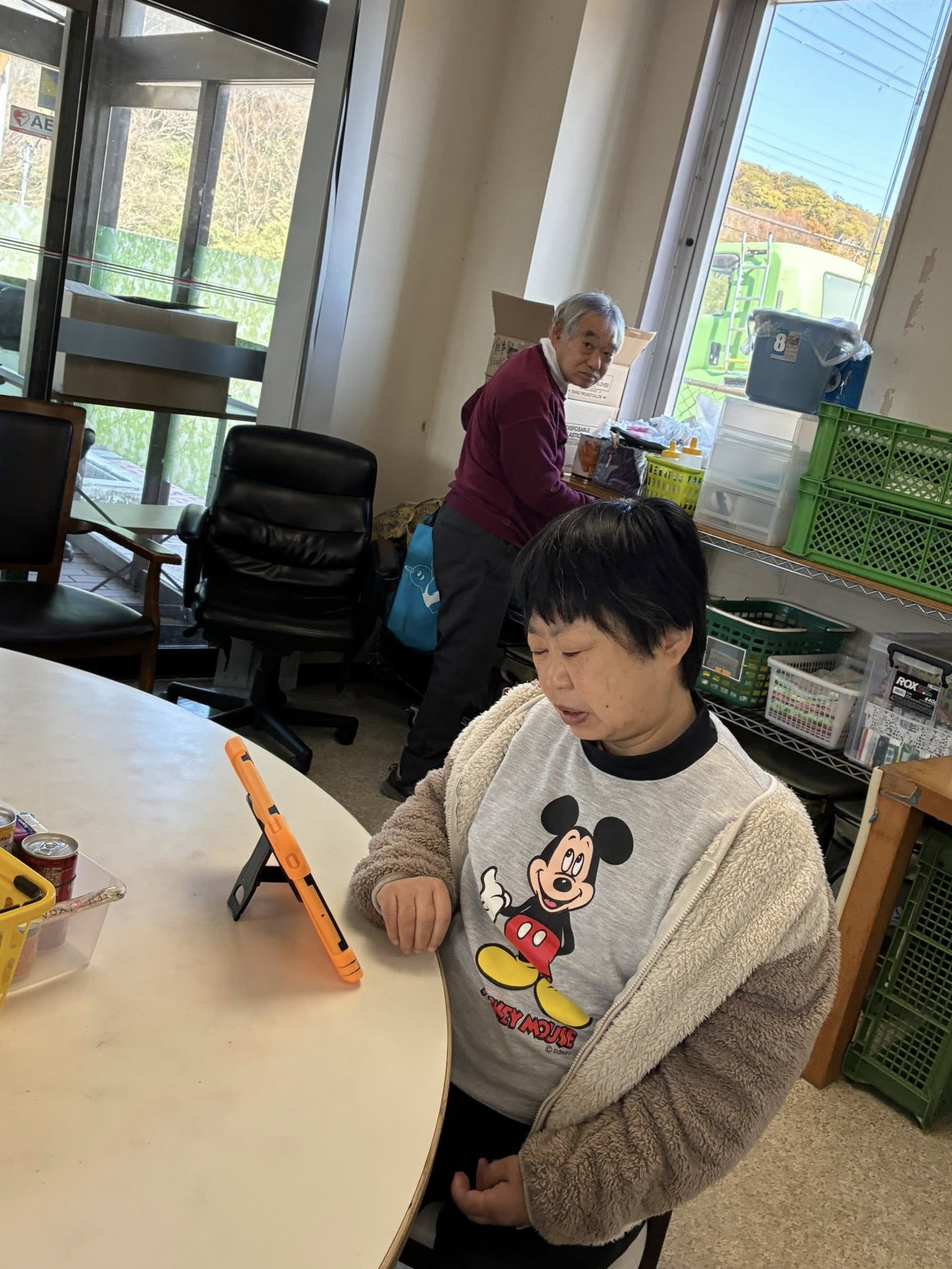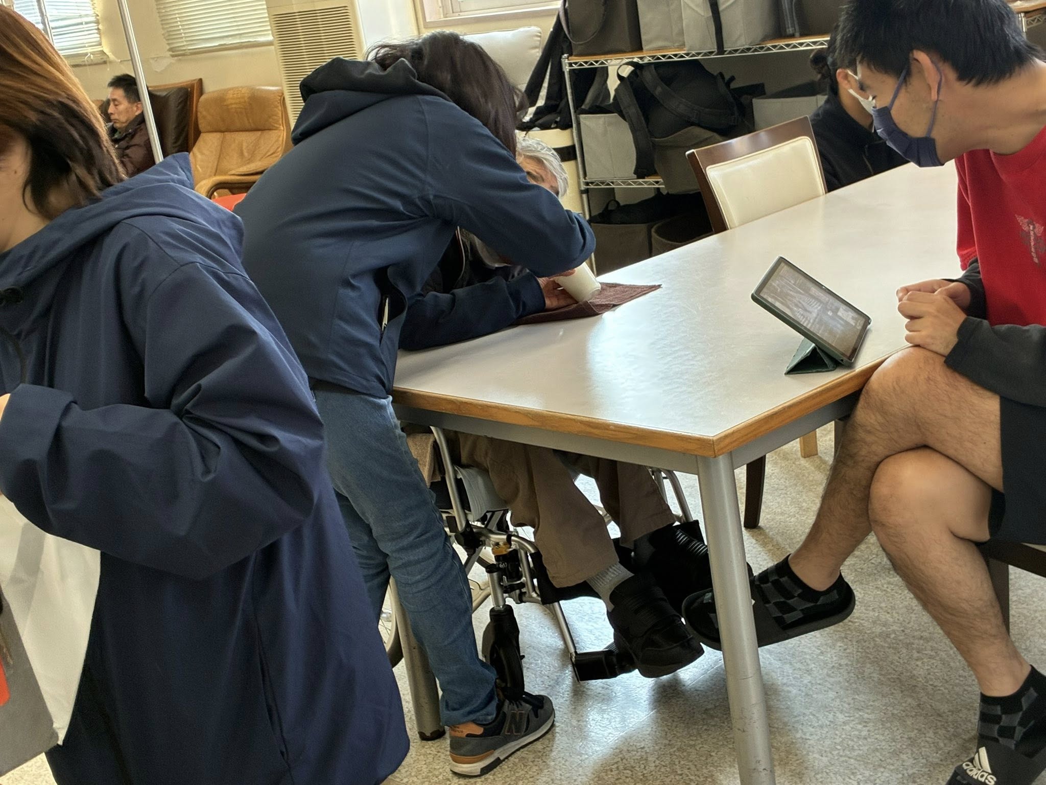 別館の工事を見る方、タブレットを