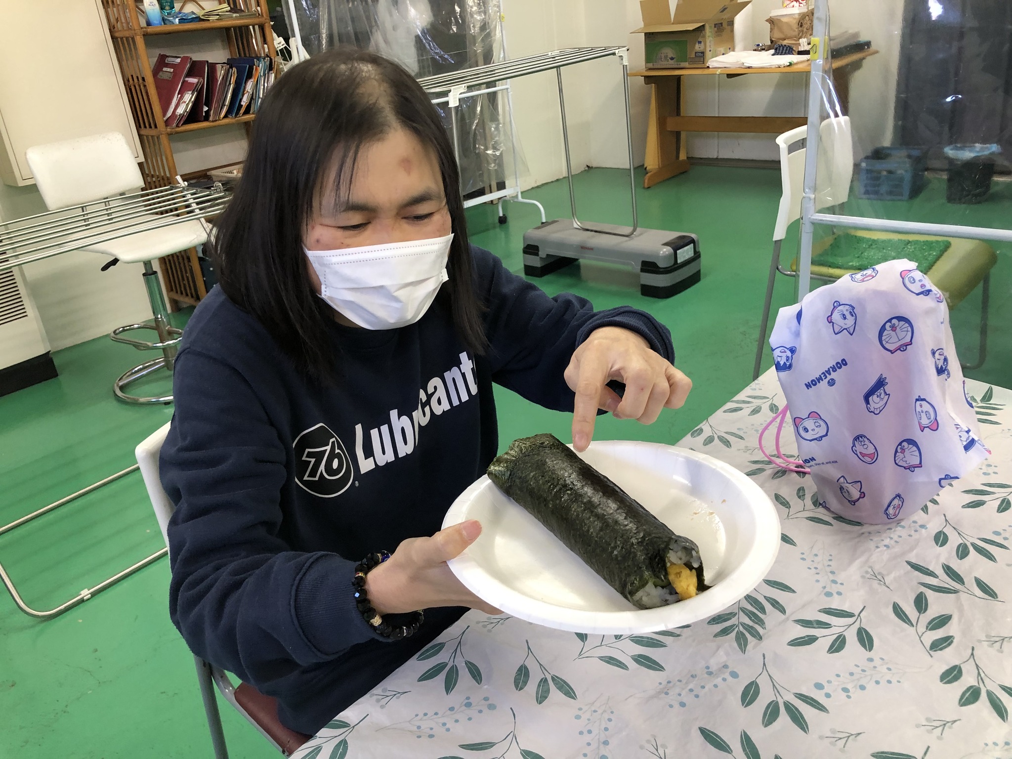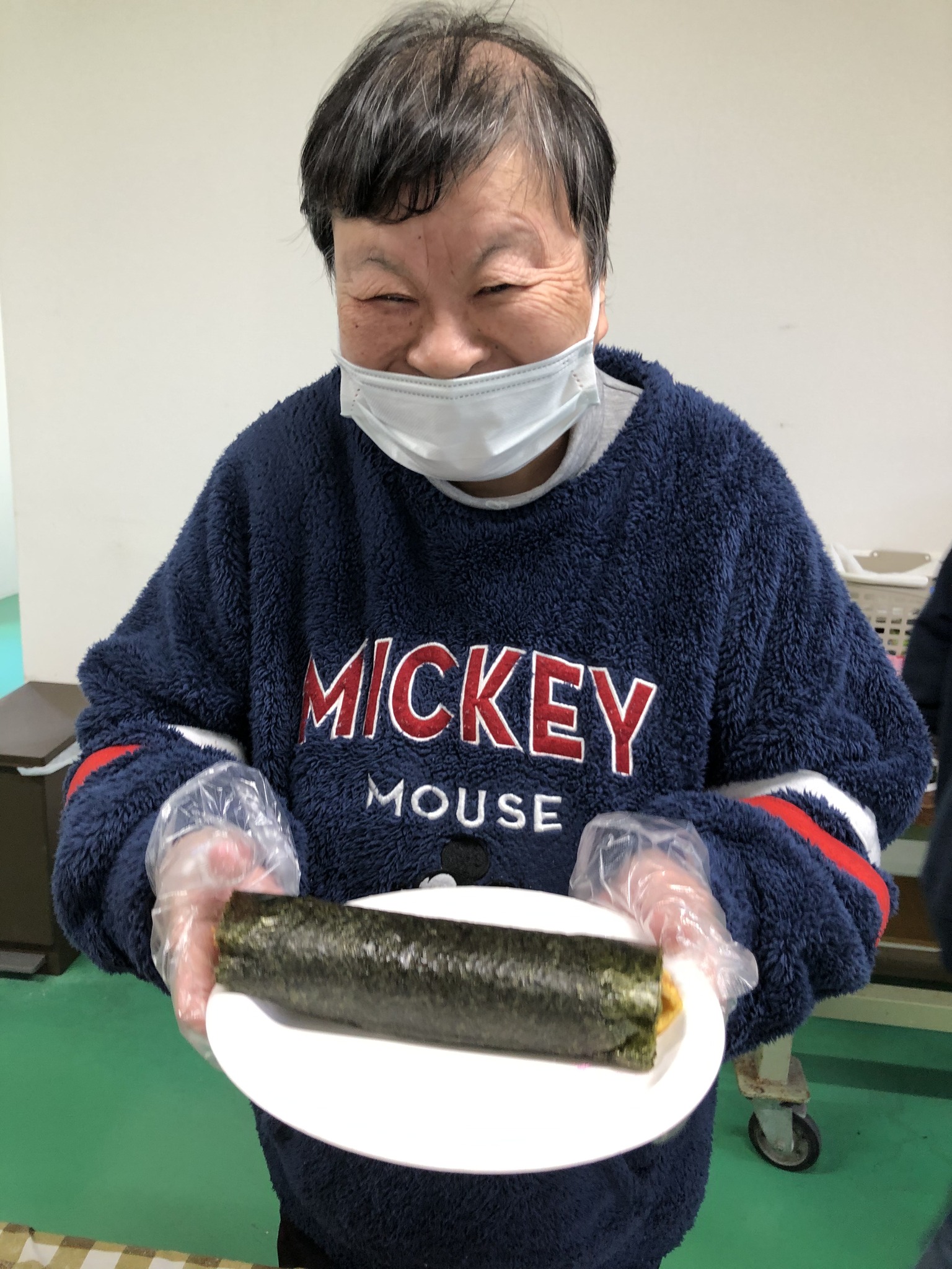 2月3日「節分」 あおいそらでも「恵方巻作り」&「豆まき」の行事を行いました。 それぞれが思い思いに「具材」敷き詰めて巻いた、恒例の恵方巻は、切った時に、思っている以上に断面がキレイに仕上がっていると「わーっ」と歓声が上がっていました。 午後からは、こちらも恒例の「豆まき」で、「鬼は外、福は内」のほかに、日頃の思いを叫ぶ方々も居て(笑)今年も賑やかな節分となりました。 今年も1年、みんなで健康に過ごせたらと思います。